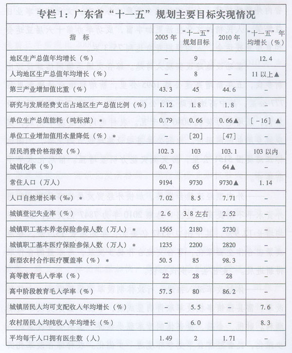 “十一五”时期是广东发展极不平凡和取得巨大成就的五年。全省坚持以科学发展观统领全局,解放思想、锐意进取、开拓创新,全面实施《珠江三角洲地区改革发展规划纲要(2008-2020年)》,成功战胜罕见的低温雨雪冰冻及洪涝灾害,积极应对国际金融危机严重冲击,经济保持平稳较快发展,社会建设取得新成就,全面完成“十一五”规划主要目标任务,在推进科学发展新征程上迈出了重大步伐,为“十二五”发展打下了坚实基础。