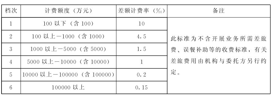 2.计件收费以被评估资产账面原值的大小划分收费档次,按上表规定的分档差额计费率计算收费额、各档相加为评估收费总额。经评估双方协商,评估收费总额可上下浮动20%.其中,证券评估业务的收费总额上浮幅度可提高到30%.