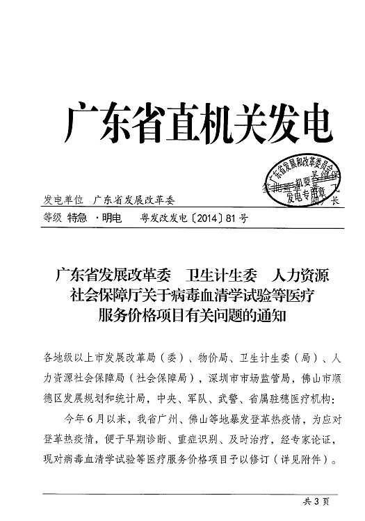 博彩网站排名 卫生计生委 人力资源社会保障厅关于病毒血清学试验等医疗服务价格项目有关问题的通知