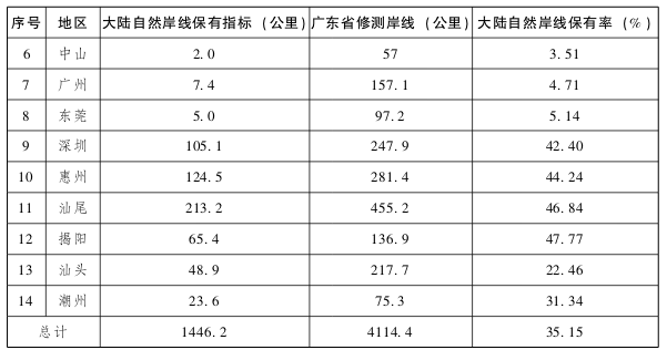 注:大陆自然岸线是指由海陆相互作用形成的岸线,包括原生自然岸线和修复自然岸线。