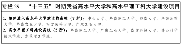 优化教育布局与结构,提升教育整体发展质量,更高水平实现教育现代化,形成在国内有广泛认同度的沿海教育高地。加快推动沿海经济带高水平普及15年基础教育,促进粤东粤西地区义务教育整体水平提升,完善异地务工人员随迁子女平等接受义务教育政策,逐步实现沿海经济带优质教育资源共享,到2020年,沿海经济带中珠三角各县(市、区)公办义务教育现代化学校覆盖率达85%以上,其他地区公办义务教育现代化学校覆盖率达65%以上。大力推进产教融合发展,提升职业教育服务沿海经济带产业转型升级的能力,以珠三角地区职业教育基地为核心,粤东粤西地区各市职业教育基地为骨干,支持广州、深圳、汕头、湛江等地组建特色教育基地和区域职业教育集团,创建沿海经济带职业教育示范区。到2020年,创建6个左右现代职业教育综合改革示范市(区)、18所一流高职院校。推进高水平大学和高水平理工科大学建设,大力引进国(境)外高等教育优质资源合作办学,重点支持广东以色列理工学院、深圳北理莫斯科大学、香港中文大学(深圳)、北京师范大学―香港浸会大学联合国际学院等建设和发展。积极深化粤港澳交流合作,提升沿海地区高等教育国际化水平及国际影响力。推动广东海洋大学、广东石油化工学院等海洋特色产业高等院校扩容提质。全日制理工类本专科学生占比提高到47%以上,理工科大学和理工类学科综合实力进入全国同类院校和同类学科前列。引导高等教育资源下沉到中等城市和产业集聚区,力争每个沿海地市至少有一所本科高校。