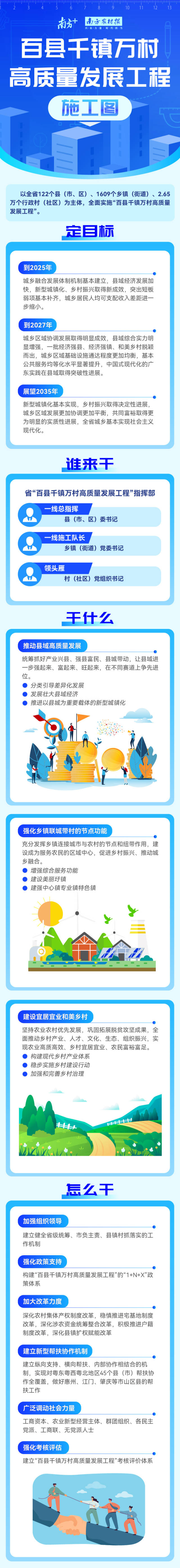 日前,广东省委印发《关于实施“百县千镇万村高质量发展工程”促进城乡区域协调发展的决定》(←点击查看全文,下称《决定》),提出以全省122个县(市、区)、1609个乡镇(街道)、2.65万个行政村(社区)为主体,全面实施“百县千镇万村高质量发展工程”。