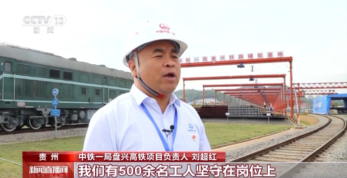 中铁一局盘兴高铁项目负责人 刘超红:“五一”期间,我们有500余名工人坚守在岗位上,确保五月份全线铺轨任务过半,为后期全线铺轨任务顺利完成打下坚实基础。