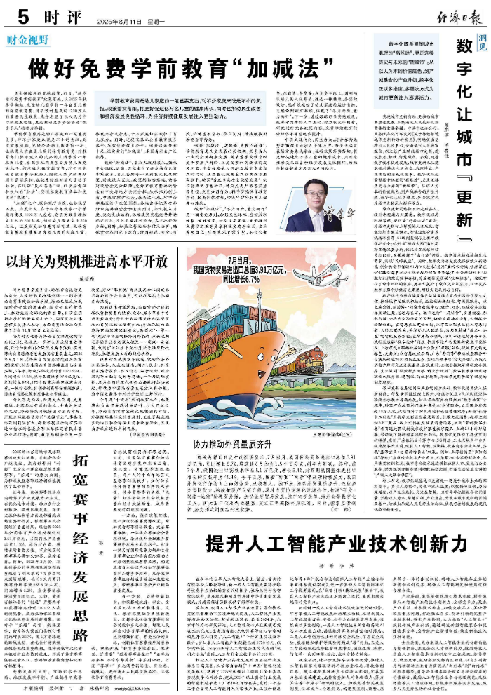 “加减”之中,既体现了力度,也体现了温度。力度之大,在于仅今年秋季一个学期即惠及1200万人左右,全国财政将增加支出大约200亿元,相应减少家庭支出200亿元。温度则更加可感可触可及,免保育教育费政策覆盖所有幼儿园的大班儿童,体现出普及普惠,千万家庭切实减轻了育儿压力。同时,还提高基本公共教育服务水平、有效促进教育公平。做好这道分量十足、沉甸甸的“加减法”,承载着社会广泛期待。